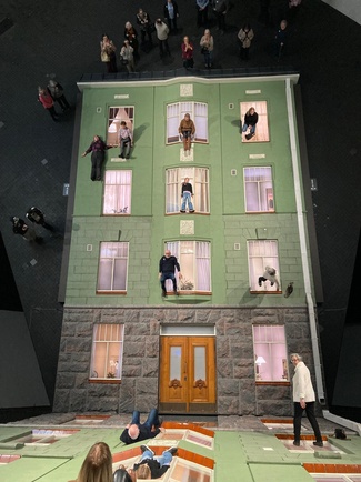 Leandro Erlich (synt. 1973) on kansainvälisesti tunnettu argentiinalainen taiteilija. Erlichin taidetta on nyt ensimmäistä kertaa esillä Suomessa. Erlich tarkastelee todellisuutta näkemisen, havainnoinnin ja vuorovaikutuksen kautta – ja rakentaa installaatioita, jotka haastavat meidät katsomaan tuttua uusin silmin. Erlichin installaatiot ovat kuin lavastuksia, joissa tutut arkipäiväiset ympäristöt – hissi, koululuokka, junamatka – alkavat äkisti käyttäytyä oudosti. Näyttelyssä mukana tunnettu Rakennus-teos, jossa helsinkiläinen jugend-talo muuttuu surrealistiseksi leikkikentäksi. Täällä ihmiset näyttävät leijuvan painottomina ja kävelevän seinillä – ja lopulta katsojakin on osa tätä taianomaista tapahtumaa.